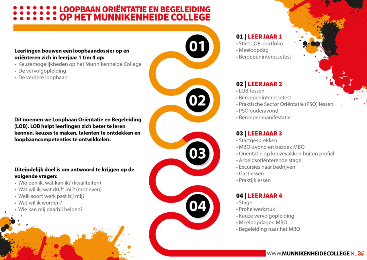 LOB-activiteiten te organiseren, zoals onder andere een MBO-avond, excursies naar bedrijven en een meeloopdag. Aan de hand van deze activiteiten wordt een online loopbaandossier opgebouwd. Dit helpt leerlingen bij het maken van een profielkeuze, vervolgopleiding en verdere loopbaan. Mochten ze er samen met hun mentor niet uitkomen, dan kunnen ze altijd nog terecht bij de keuzebegeleider.